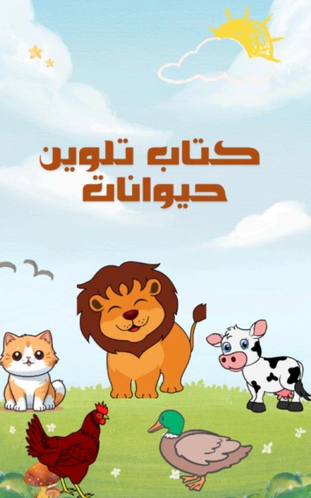 - المحتوى: رسومات تلوين لحيوانات متنوعة (قطة، أسد، وغيرها)